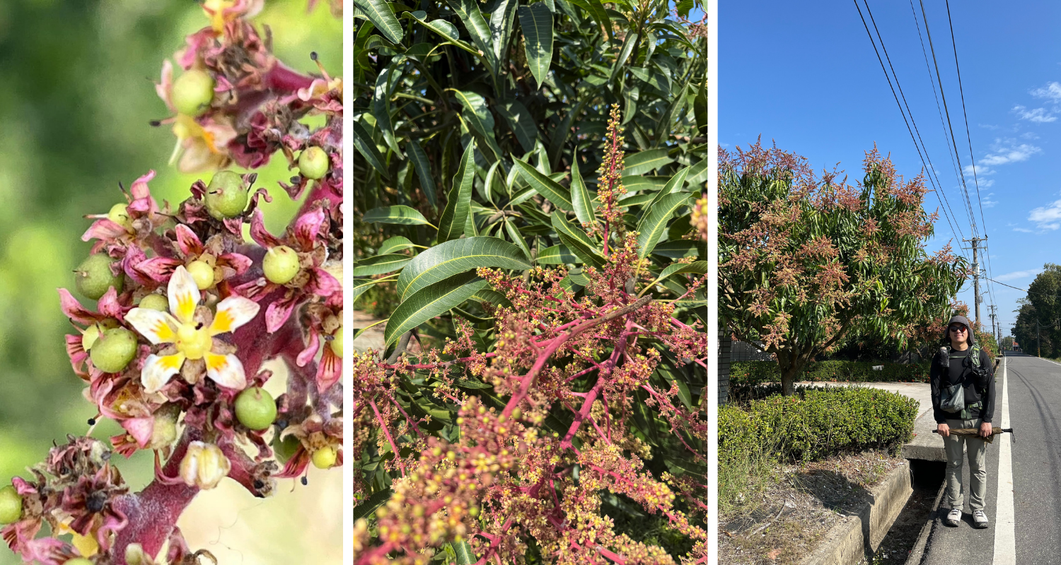 ▸ (左) 金煌芒果的花,已經部分開始結果了