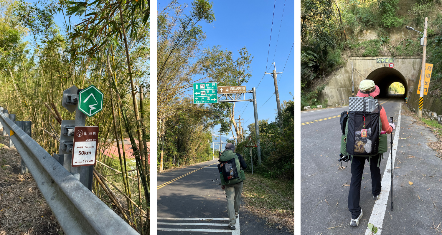 沿路每隔一段距離就會設立理程牌,不時也有其他形式的指示牌。其中最有趣的是里程牌的雙色設計,向山方向的顏色是綠色;向海方向則是藍色,當中途離開路線再接回時,可以快速透過顏色判斷方向是否正確,很簡單又聰明的小設計。但...也不要完全依賴路標,聽說原鄉之路中,就有幾面里程牌的方向是不小心被安裝相反的。最好還是下載 GPX 軌跡檔,搭配離線圖資再配合 Google Map 對照使用。(小小提醒 : Google Map 到原鄉之路後半段可能就不太適用了,最好還是使用離線地圖,以防迷航。)