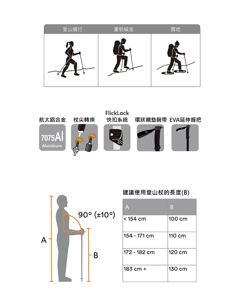 平衡舒適性、功能性和可靠性,Trail 採用了更新的 EVA 發泡棉握把,增加了舒適感、安全性和更好的操作性;在不同季節和地形中提供最佳的舒適性和可靠性,無論是徒步還是雪地行走,都能提供出色的支持和穩定性,是一款適用於任何地形或季節的極其多功能的登山杖。