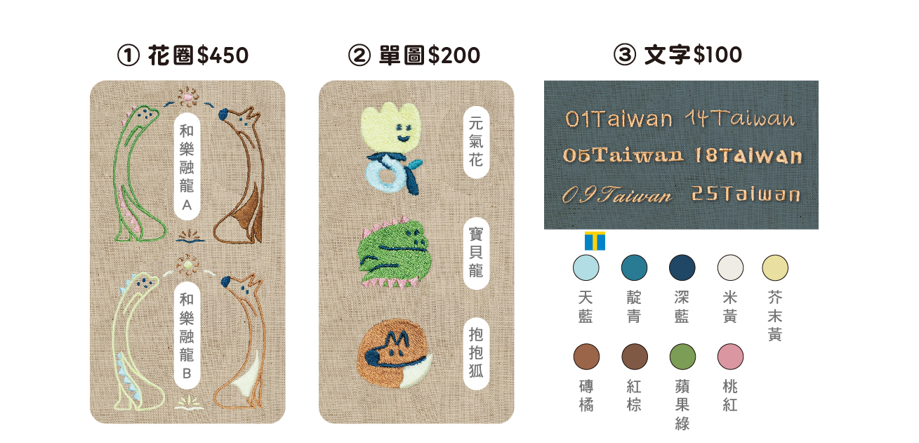 ▪ 刺繡呈現有一定誤差,不接受重製或修改,亦不在保固服務範圍內。