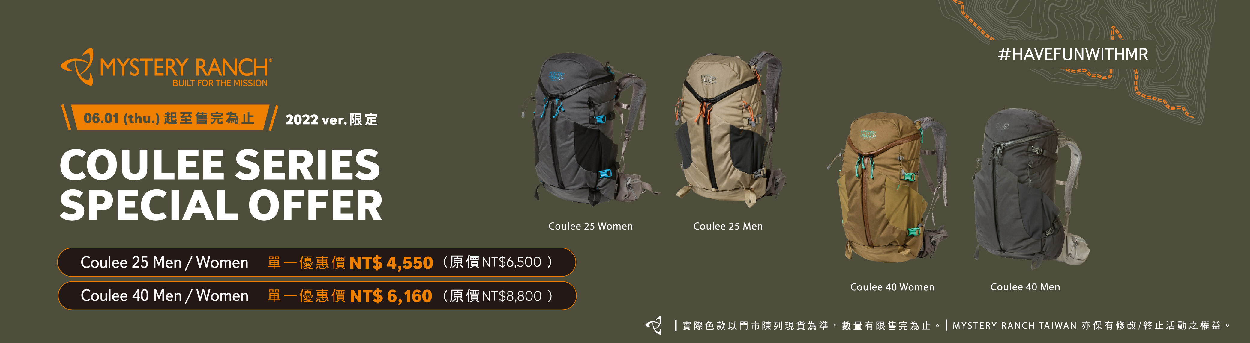MYSTERY RANCH 精心設計經典 COULEE 系列,提供背負極佳的舒適、耐用性,採用高品質材料製成,經過嚴格測試,能夠抵抗各種戶外環境的挑戰!