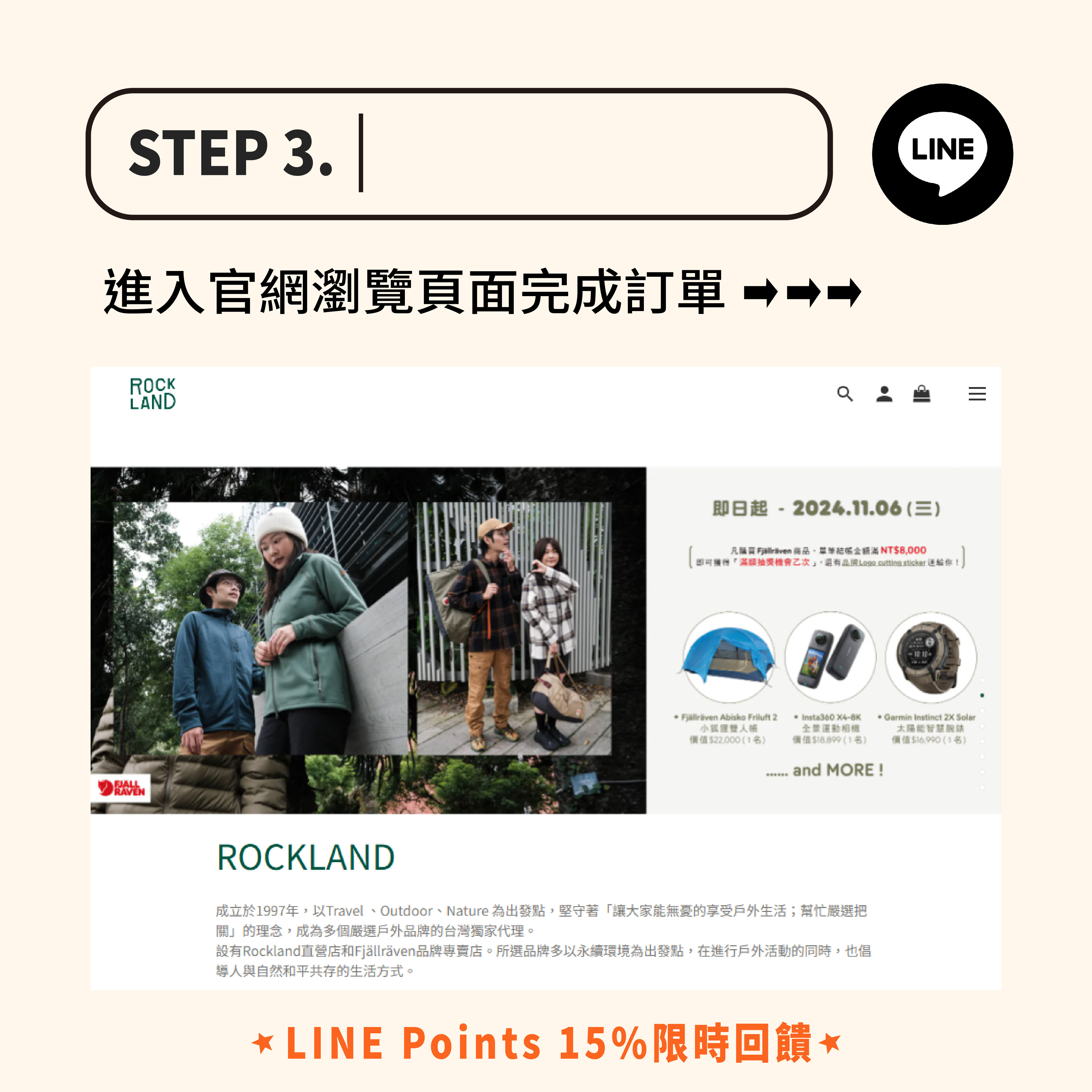 趁現在透過 LINE 購物頁面前往洛克島官網