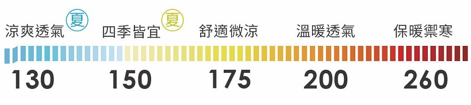 ( 註: 數字是代表每平方公尺,所使用的羊毛重量克數g/m² )