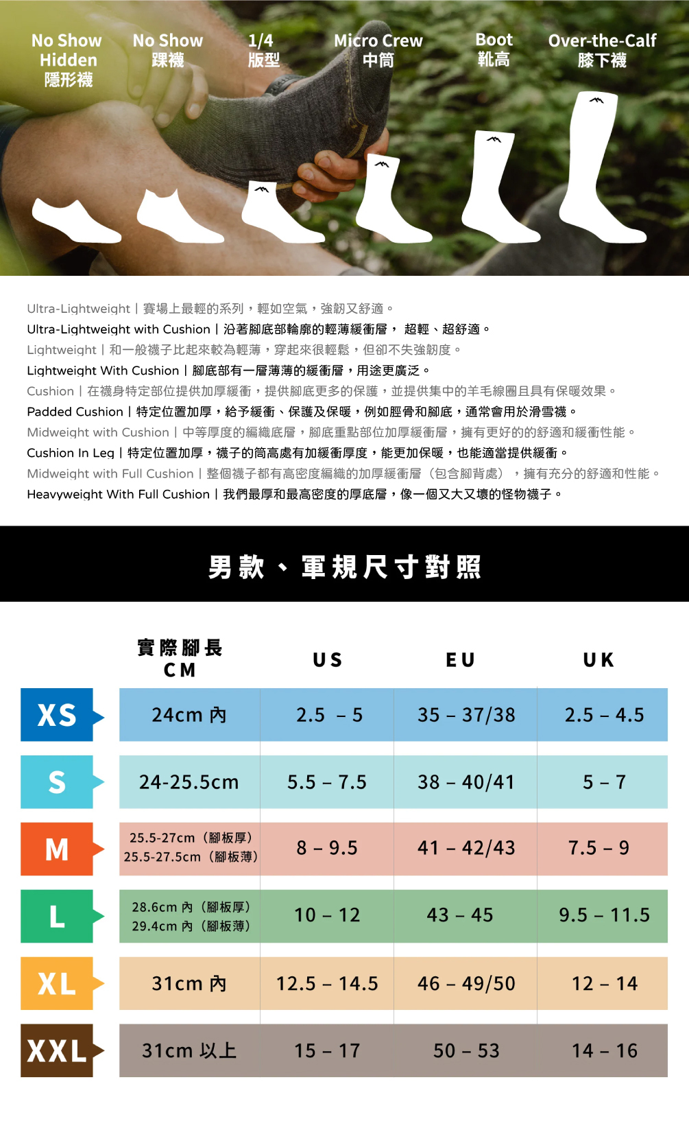 Darn Tough 為100%美國生產製造,擁有40年製襪經驗,使用細緻舒適的美麗諾羊毛並採用高密度編織強化耐用。