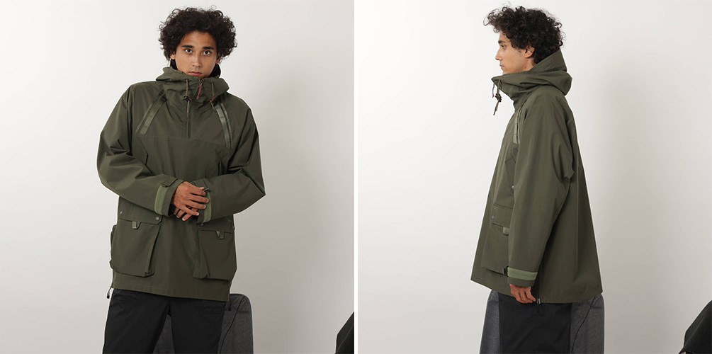 關於TAKIBI RIPSTOP|NANGA開發的全新難燃抗撕裂材質。原本的TAKIBI材質中含有的芳綸”纖維,不僅有難燃的特質,也兼具耐磨與耐久性。使用的RIPSTOP布料上的格紋,能防止布料撕裂時持續擴大的可能,是在材質與布料組織相輔相成的設計。纖維開發採用具捲曲形狀設計,在織成布料後能讓布料本身附有自然的彈性。