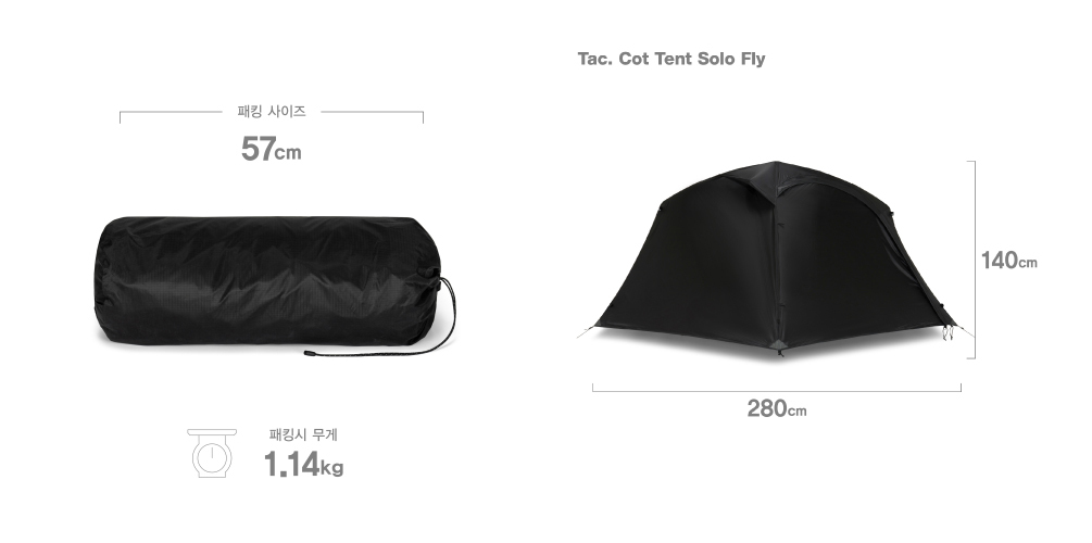Helinox Tactical Cot Tent Solo Fly 為可搭配 Tactical Cot Tent Solo 內帳使用的外帳表布,於戶外無遮蔽狀況下,可使內帳免受雨、雪、風、陽光直射等惡劣天氣,安全舒適地享受戶外活動並可利用前庭增加存放物品的空間。