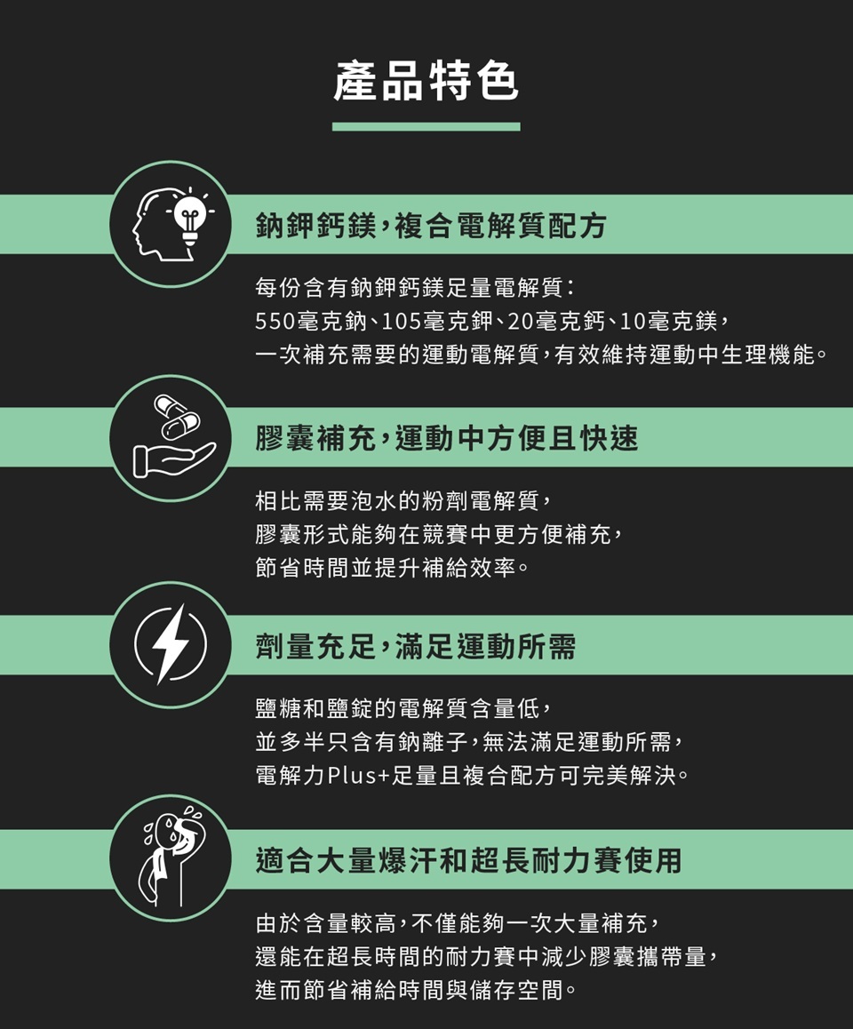 備註:使用時請同時補充足量水分,若僅攝取電解質而未同時飲水,可能造成不適。